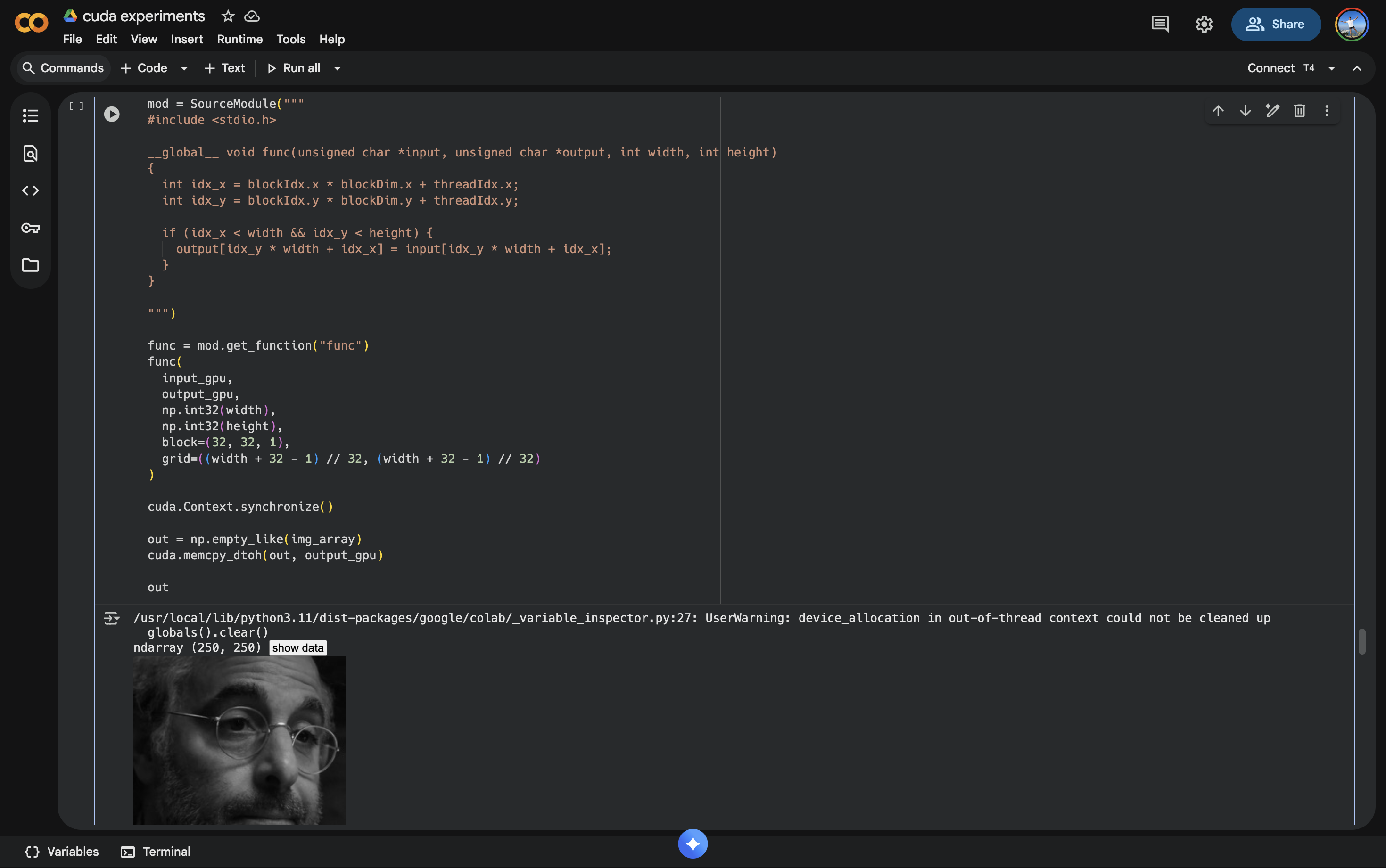 Using CUDA to turn Stanley Tucci black and white lol